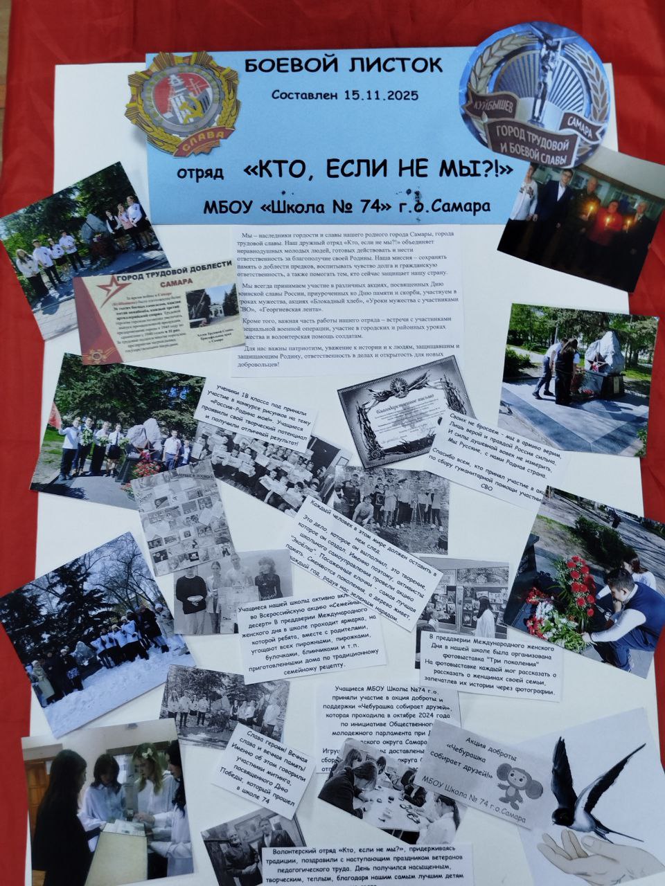 Команда отряда "Кто, если не мы " МБОУ «Школа 74» г. о. Самара принимает участие в городском и региональном конкурсе Боевых листков "Город Трудовой Доблести"